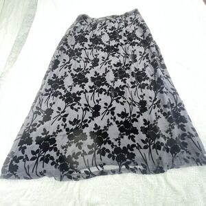 Vintage Kate Hill Womens Y2K Burnout Midi Skirt Sz 20W Floral Black Silk Sheer