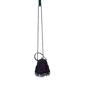 Elevate your evening look with this stunning vintage Kate Laundry shoulder bag. The scalloped silk design in a beautiful shade of purple is adorned with intricate beading, sequins and fringe accents, making it a true statement piece. The small size is perfect for carrying your essentials, while the leather lining ensures durability. This is a must-have addition to any fashion-forward woman's handbag collection. Measurements photographed. See pictures, please. Great Condition. Ships quickly