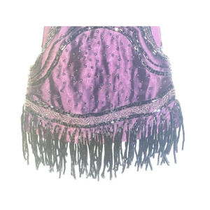 Vintage Kate Laundry Purple SCALLOPED SILK EVENING BAG Beaded Fringe Sequins