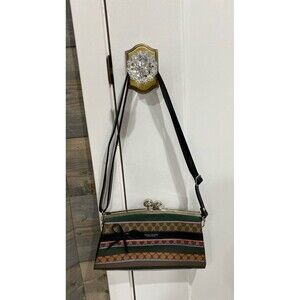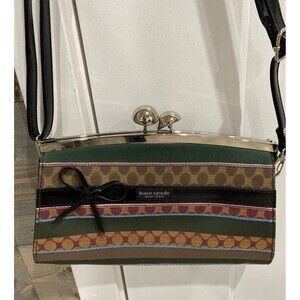 Vintage Kate Spade Crossbody Clutch Bag Green Blue Hand Bag Striped Purse