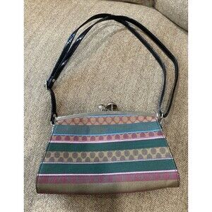 Vintage Kate Spade Crossbody Clutch Bag color: Green Blue Pink Striped Purse Unique!