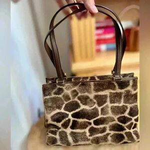 VINTAGE Kate Spade Handbag Faux Giraffe Print, USED in VERY GOOD CONDITION, There is a stain on the bottom of the purse. (PLEASE SEE PHOTOS FOR MORE DETAILS)