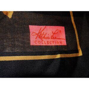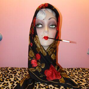 Vintage Kathie Lee Collection Extra Large Floral Scarf black roses head wrap bow