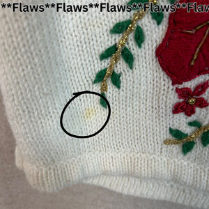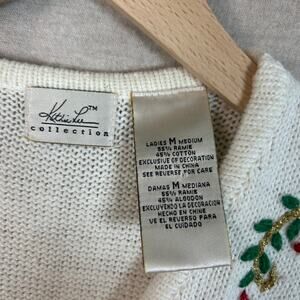 Vintage Kathie Lee Womens Knit Sweater Vest Size M Embroidered Beaded Christmas