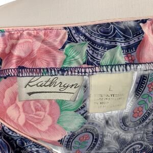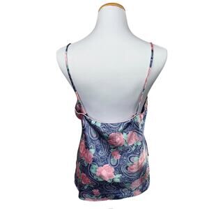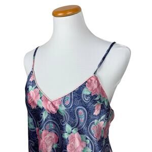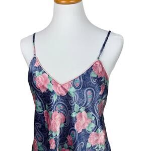 Vintage Kathryn Cami Top Blue Pink Rose Floral Satin Women's L