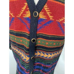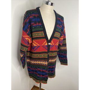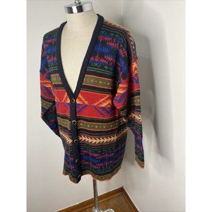 Vintage Kathryn Deene Wool Cardigan Sweater 22 24 Southwestern Western Print
