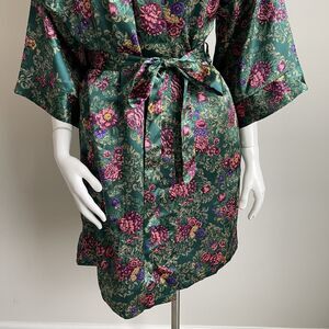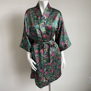 Vintage Kathryn Floral Silky Chemise Slip Nightgown & Kimono Robe Set