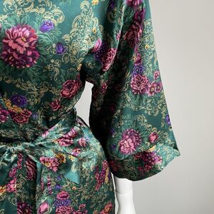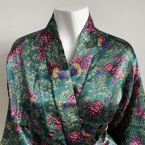 Vintage Kathryn Floral Silky Chemise Slip Nightgown & Kimono Robe Set - Small