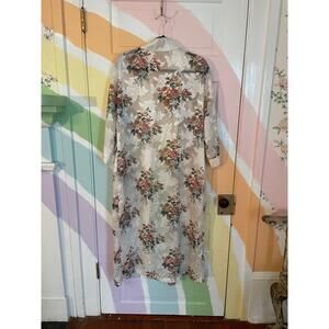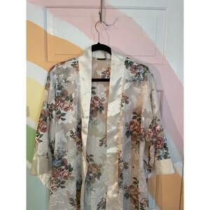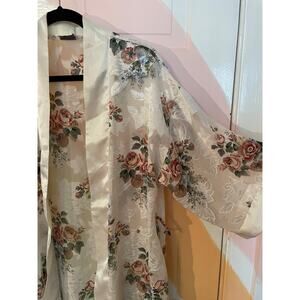 Vintage Kathryn Sheer Floral Lace Kimono Robe Duster Cover Up Satin Size Small