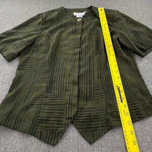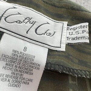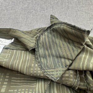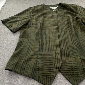 Vintage Kathy Che Button Blouse olive Green Lightweight Shoulder Pads Size 8