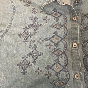 Vintage Kathy Che Chambray Button Down Shirt size 18 90's Embroidered Denim