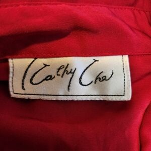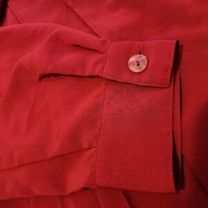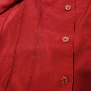 Vintage Kathy Che Red Button Up Collared Pleated Shirt Blouse Womens Size 16 EUC