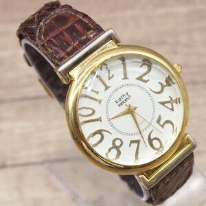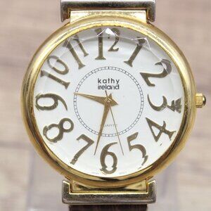 Vintage Kathy Ireland Watch Unisex Gold Tone Stainless Steel Big White Dial Y2k