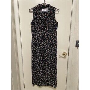 Vintage Kathy Lee Collection Floral Front Button Sleeveless Dress Womens Size 8