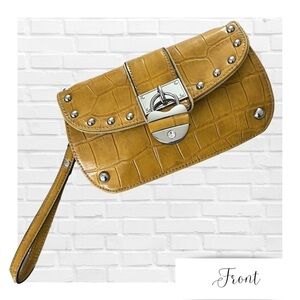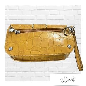 Vintage Kathy Van Zeeland Faux Crocodile Skin Yellow Clutch Wristlet with Heart