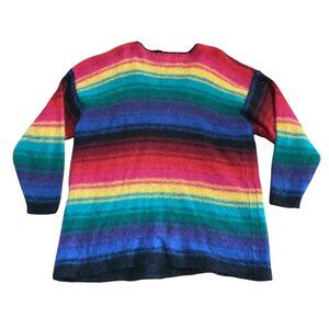 Vintage Katy D Rainbow Striped V-Neck Sweater Plus Size 22/24 50% Mohair Womens