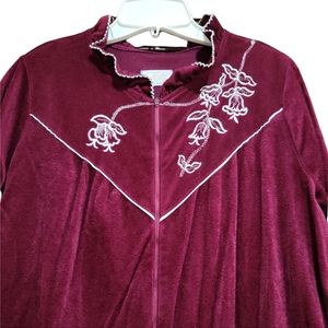 Vintage Katz zip front closure with two side pockets and white embroidery details. See pictures for normal wear. Smoke and pet free home. EUC