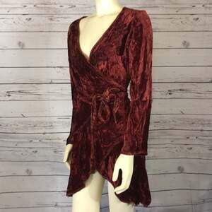 Very cute velvet wrap top with long sleeves, sleeves look like bell cuffs
