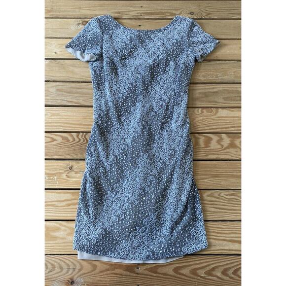 Kay Unger Women’s Grey Lined Embroidered Sequined Midi Dress Size 6