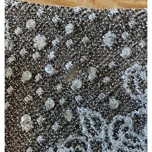 Vintage Kay Unger Embroidered Sequined Midi Dress Size 6 Women’s Grey Lined