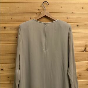 Light Gray Satin Silk Knee Length Dress With Chiffon Overlay & Sheer Sleeves