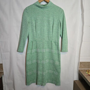 Vintage Kay Windsor 60s Mock Dress Long Sleeve Geometric Pattern Print Medium