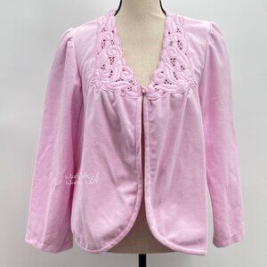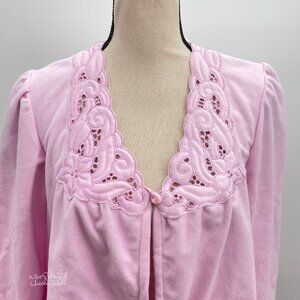 Vintage Kayser Pink Long Sleeve Embroidered Buttoned Sleep Cardigan Top Medium