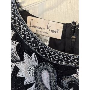 The Vintage Kazar Women’s size Large Beaded, Sequined, Embroidered Long Sleeve Top is a luxurious and elegant blouse perfect for formal occasions. Made of silk with a textured pattern and black color, this top features a V-neckline, asymmetrical sleeves, and intricate beading, sequining, and embroidery accents. The top is handmade in India and includes a zipper closure for easy wear. Whether for an evening event or a special occasion, this top exudes colorful, prop, and formal themes with a touch of glitter and scalloped edges, making it a standout piece in any woman's wardrobe. Please look at measurements vintage garments run small!!