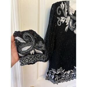 Vintage Kazar Women’s Large Beaded, Sequined, Embroidered Long Sleeve Top, Zip