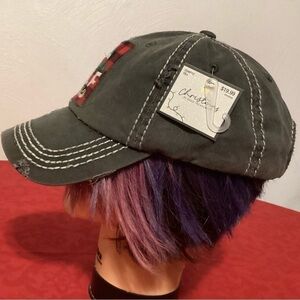 Vintage Kbethos MAMA ELF Hat Cap Distressed Style Gray w Plaid Patch Adjustable