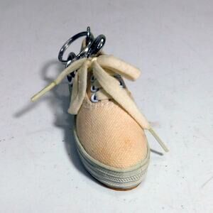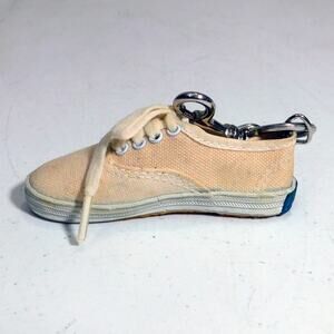 Vintage Keds Right Shoe Keychain White Beige 4 Inch