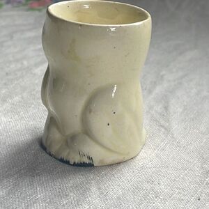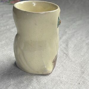 Vintage Keele Street Pottery England egg cup Hand painted. Some fading of paint from time and use. I’ve used it as a toothpick holder.