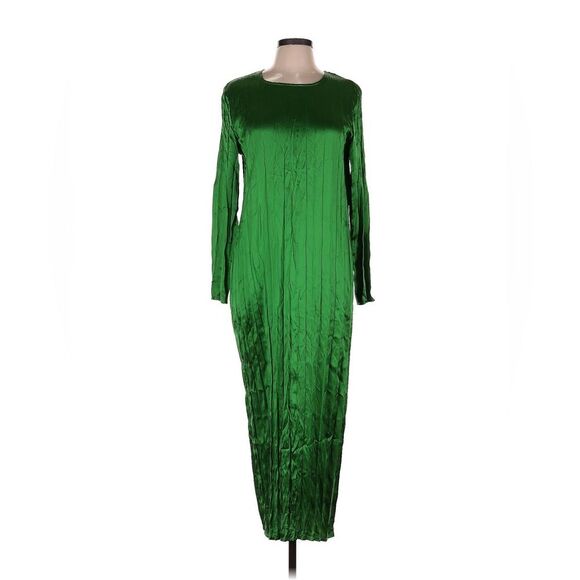 Vintage Kelly Green Long Sleeve Pleated Maxi Dress Party Gown Size 40