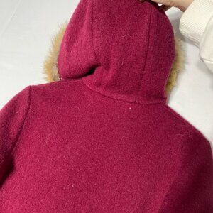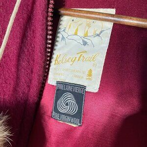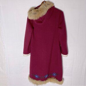 Vintage Kelsey Trail Burgundy Wool Embroidered Zip Front Parka W Fur Trim M