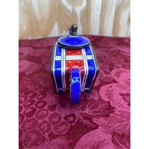 Vintage Kelvin Chen Miniature Teapot Beach Coastline Scene Blue Red Plaid Accent Enamel Copper