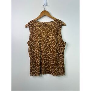 Vintage Kemp Collection Giraffe Print Sheer Tank Top Brown Y2K Safari Animal XL