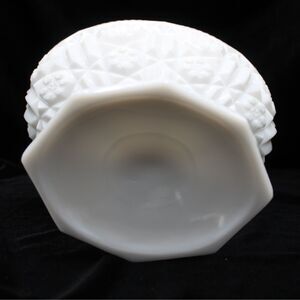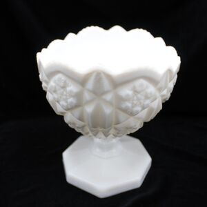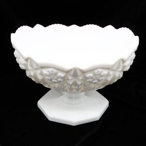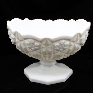 Vintage Kemple Pedestal Milk Glass Centerpiece Fruit Bowl Planter Toltec Pattern
