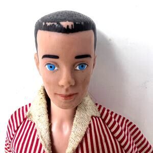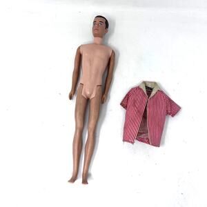 Vintage Ken Doll 1960s Brunette Brown Painted Hair Mattel Barbie Striped Shirt