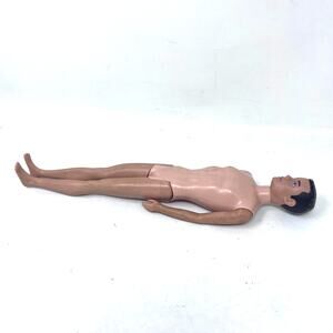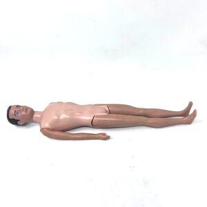 Vintage Ken Doll Brunette Painted Hair Blue Eyes 1960s Mattel Barbie Striped Shirt