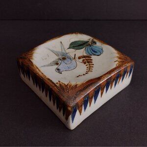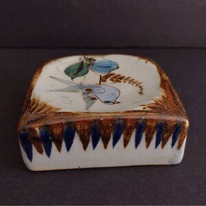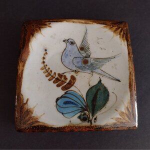 Vintage Ken Edwards Mexican Pottery Pillar Candle Holder Square Bird Signed
