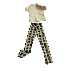 Vintage Ken by Mattel Cream Knit T-Shirt & Patterned Slacks Outfit 1960s