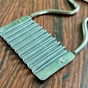 Vintage Kenberry crinkle-cut slicer, marked Made in USA. This retro kitchen tool features a sturdy wavy stainless steel blade with a wire handle, designed for making French fries, slicing vegetables, or creating decorative garnishes.