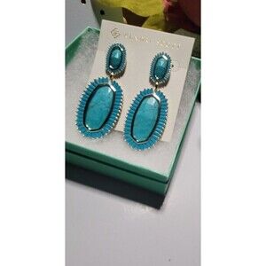 I've never worn these Kendra Scott turquoise & gold 'original' KAKI earrings, but I don't have the tag. I don't see any tarnish and no missing stones. They'll be shipped with an earring card and dust bag promptly and with care. Feel free to message me with any questions or if you want any additional photos. Thank you for supporting our small online store.