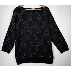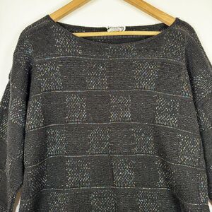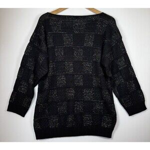 Vintage Keneth Too Plus Sweater Womens Large Black Metallic Knit Pullover USA 90s