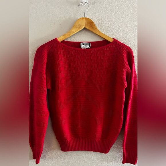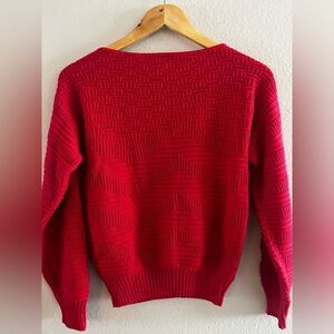 Vintage Keneth Too! SZ S/M Red Crew Neck Sweater Classic Knit 80s