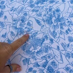Vintage Kenmill Textile blue white hibiscus tropical flower fabric 60"x78"
