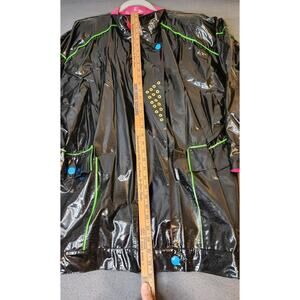 Vintage Kenn Sporn For Wippette Rain Jacket Womens Sz L Black 80s Retro Vinyl
