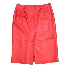 Vintage Kenneth Cole 100% Genuine Leather Red Pencil Skirt Women's Size 10