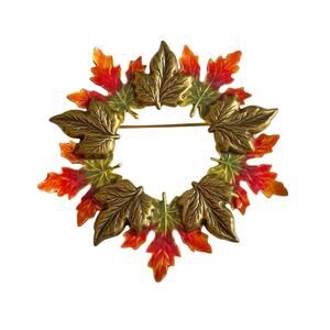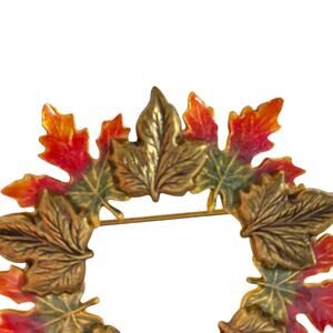 Vintage 80s Kenneth Cole Autumn Leaves Wreath Brooch Pin Enameled