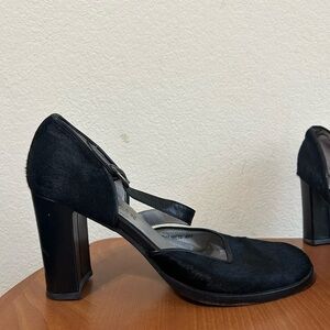 Vintage Kenneth Cole Black Leather Fur Exterior Clasp strap closure Italy Size 8
